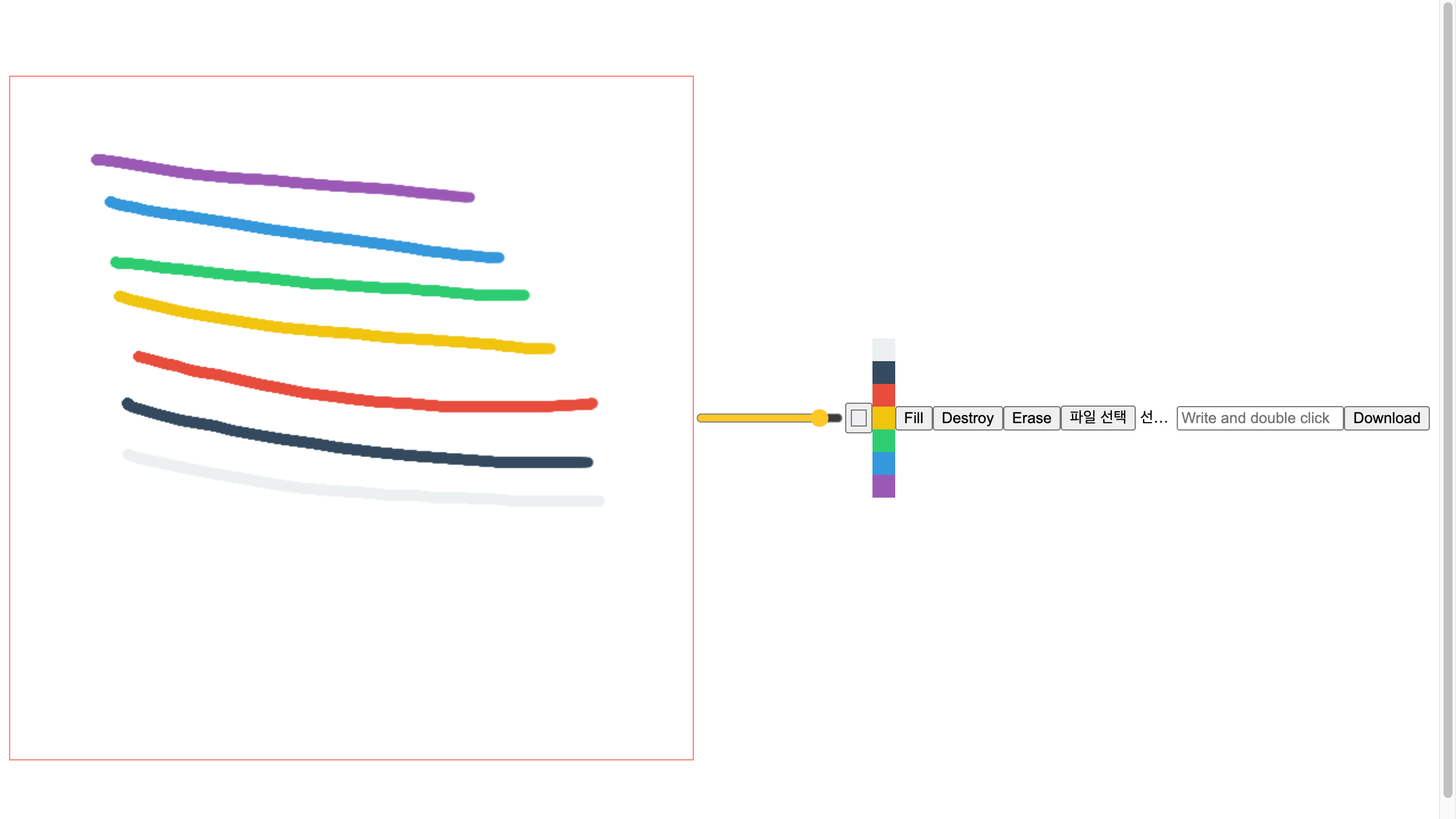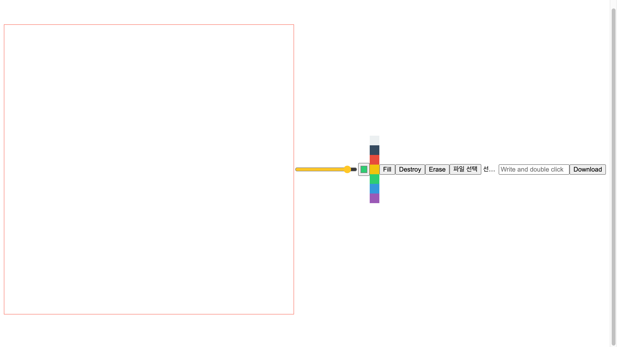 - 캔버스가 클릭될 때 isFilling이 true라면 현재 색상으로 캔버스 크기의 사각형을 그린다.